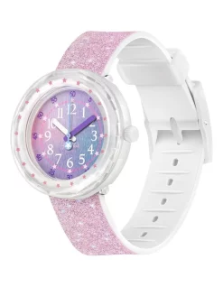 PEARLAXUS educational kids watch helps learn how to tell time in true style with a metallic effect, pink glitter and stars. Gift it to your favourite fashionistas.