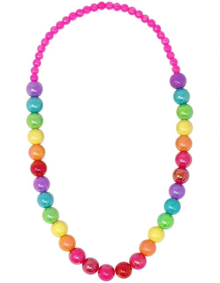 Pink Poppy’s Rainbow Beads Necklace has colourful vivid beads on a quality stretch elastic. Perfect fashion accessory.