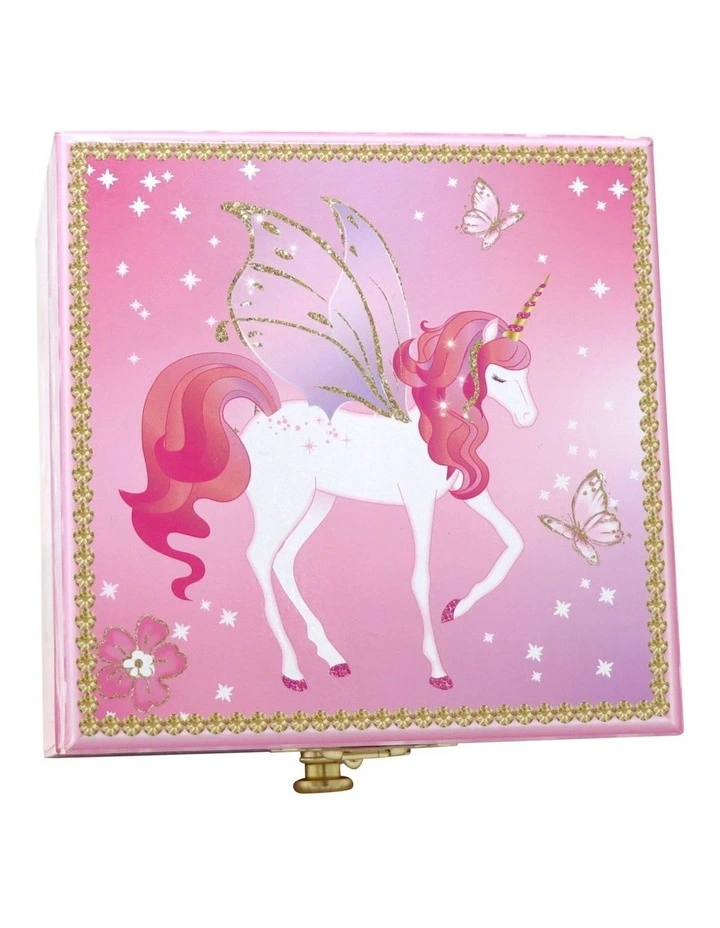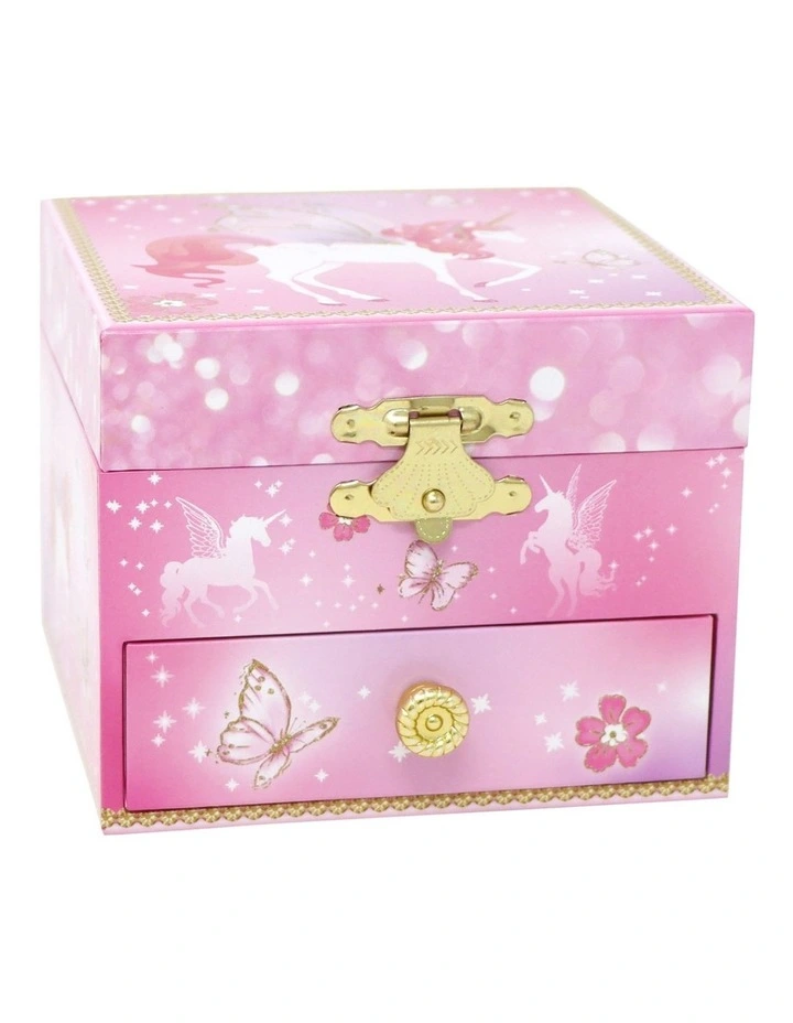 Pink Poppys Unicorn Princess Musical Jewellery Storage Box is gorgeously made, illustrated with elegant Unicorns and flowers living in a world of fancy pastel pink and purple. Wind-up design plays the classic tune Dance of the Sugar Plum Fairy. The musical jewellery box features a pull-out drawer to store all your precious tiny treasures. It also comes with an oval-shaped mirror to help you keep your perfect look all day long.Â