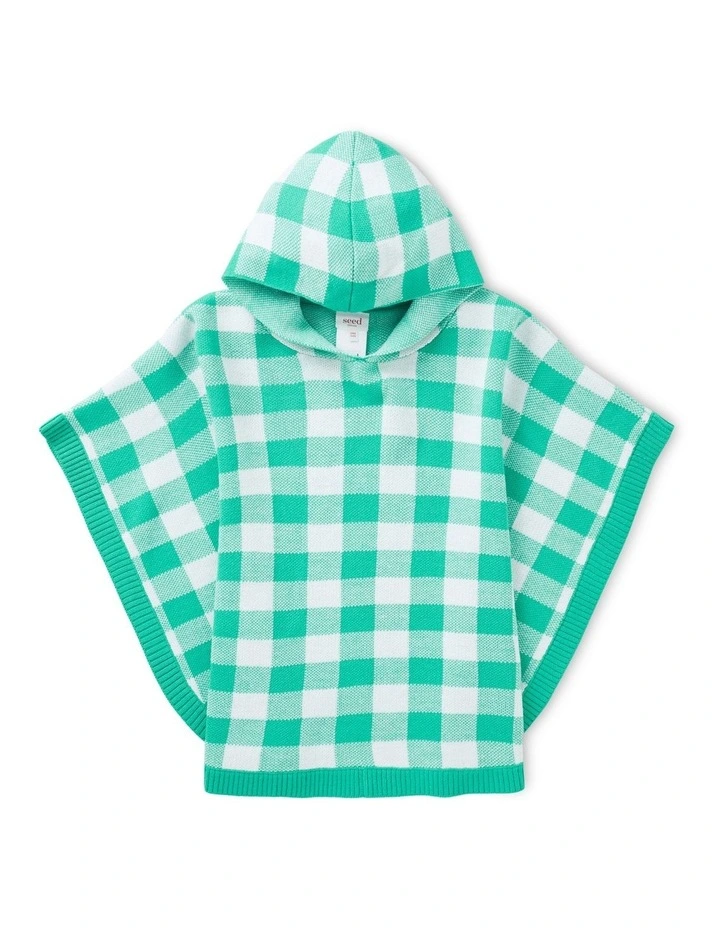 Covered in a checkered print, this knit poncho is a warm and cosy addition to any outfit.