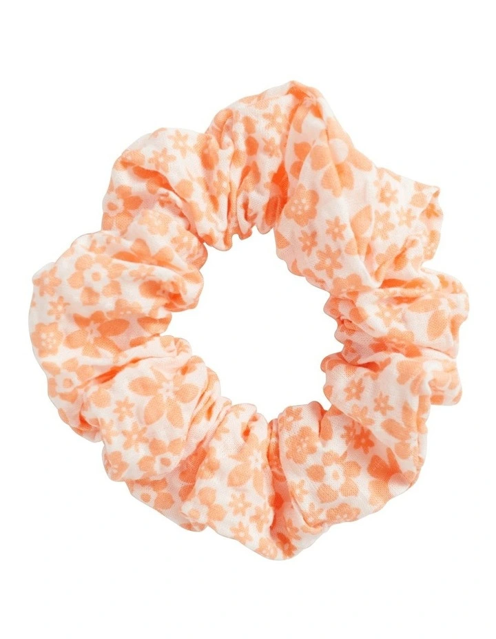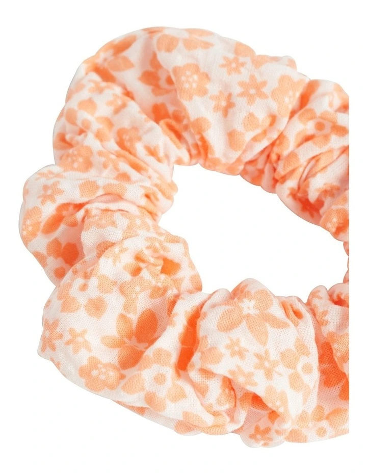 This soft scrunchie is elasticised for all-day comfort. Featuring a mango coloured ditsy print. This product is not a toy and is not suitable for children three years and under.