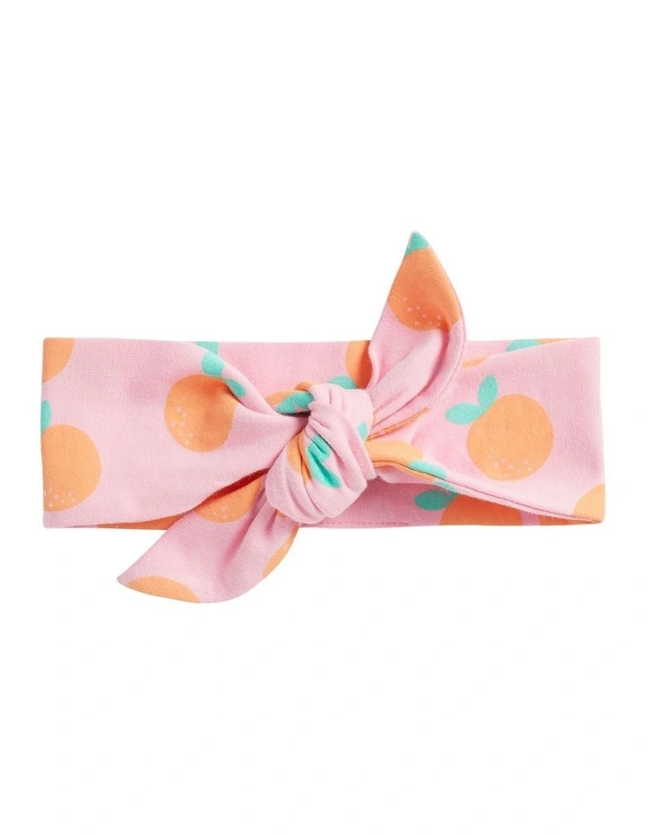 Made with stretch for a comfortable fit, this headband features a knot design. In bright pink with an all-over orange print. This product is not a toy and is not suitable for children three years and under.