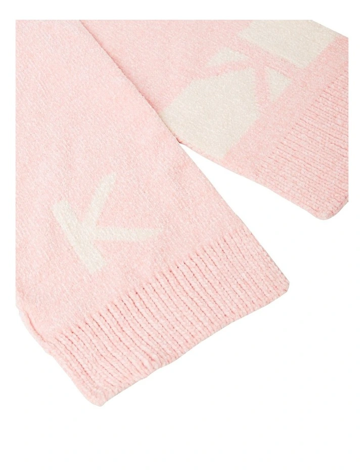 Make it personal with this knit scarf featuring an initial at each end. In dusty rose and white, it has a soft, pretty look bring some joy to cold winter mornings.