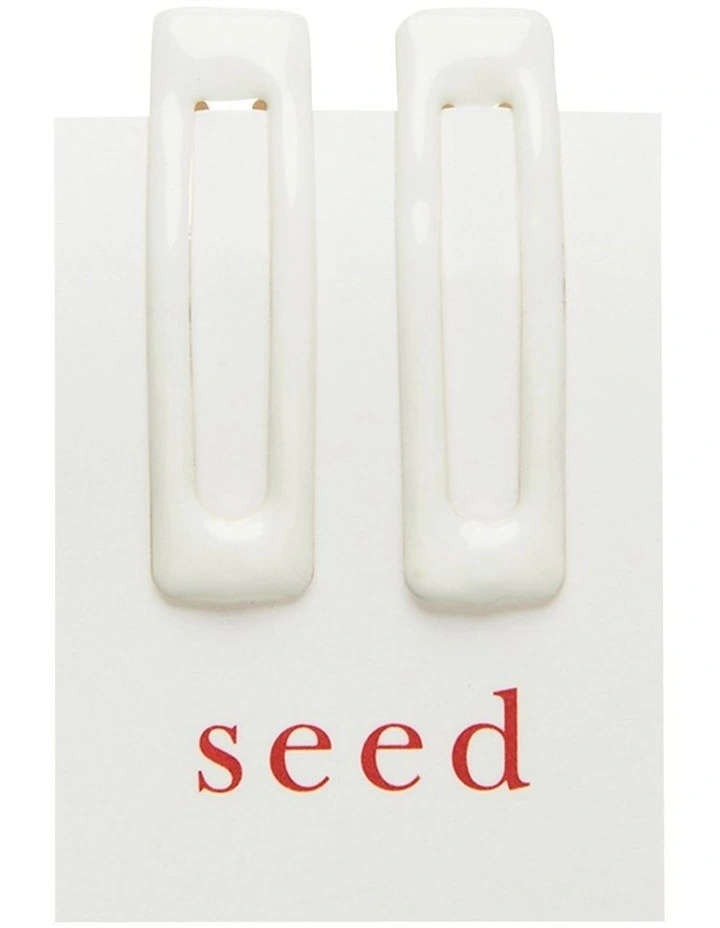 Finish any look with this set of two snap clips. Designed in a sleek square shape, the shiny resin will compliment any style and pull hair back with ease. This product is not a toy and is not suitable for children 3 years and under.