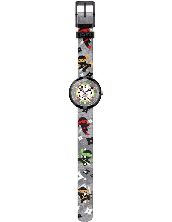Masterful ninjas spring into action on the colourful Wakuwaku educative kids watch. Gift it to agile little warriors learning to tell the time.